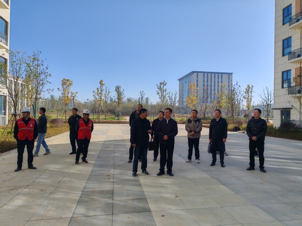 袁旗一行实地查看北校门、教学楼、学生宿舍楼及行政楼等单体,详细了解项目建设整体规划、项目投资及项目进度等内容。