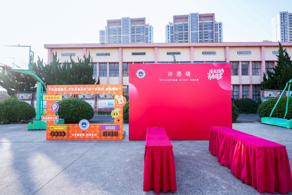 除了暖心美食福利,活动现场还设置了趣味互动游戏区,许愿墙、幸运转盘、趣味投壶等丰富玩法吸引众多学生踊跃参与。同学们在轻松愉悦的氛围中协作闯关,完成任务即可额外领取美食餐券或精美礼品,既增进了同窗情谊,又为活动增添了满满的参与感与欢乐感。此外,打卡区的精心布置也成为热门场景,同学们纷纷驻足拍照留念,定格青春新年的美好瞬间。