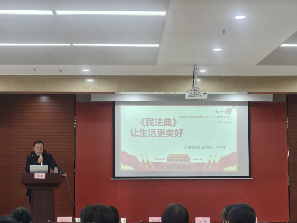 仪式结束后,现场同步开展了普法宣传活动。学院法律二系学生表演了自编自导的普法情景剧,用生动鲜活的方式诠释法律知识。法律二系老师为社区工作人员和居民带来了一场题为《民法典让生活更美好》的专题讲座,获得现场热烈反响。