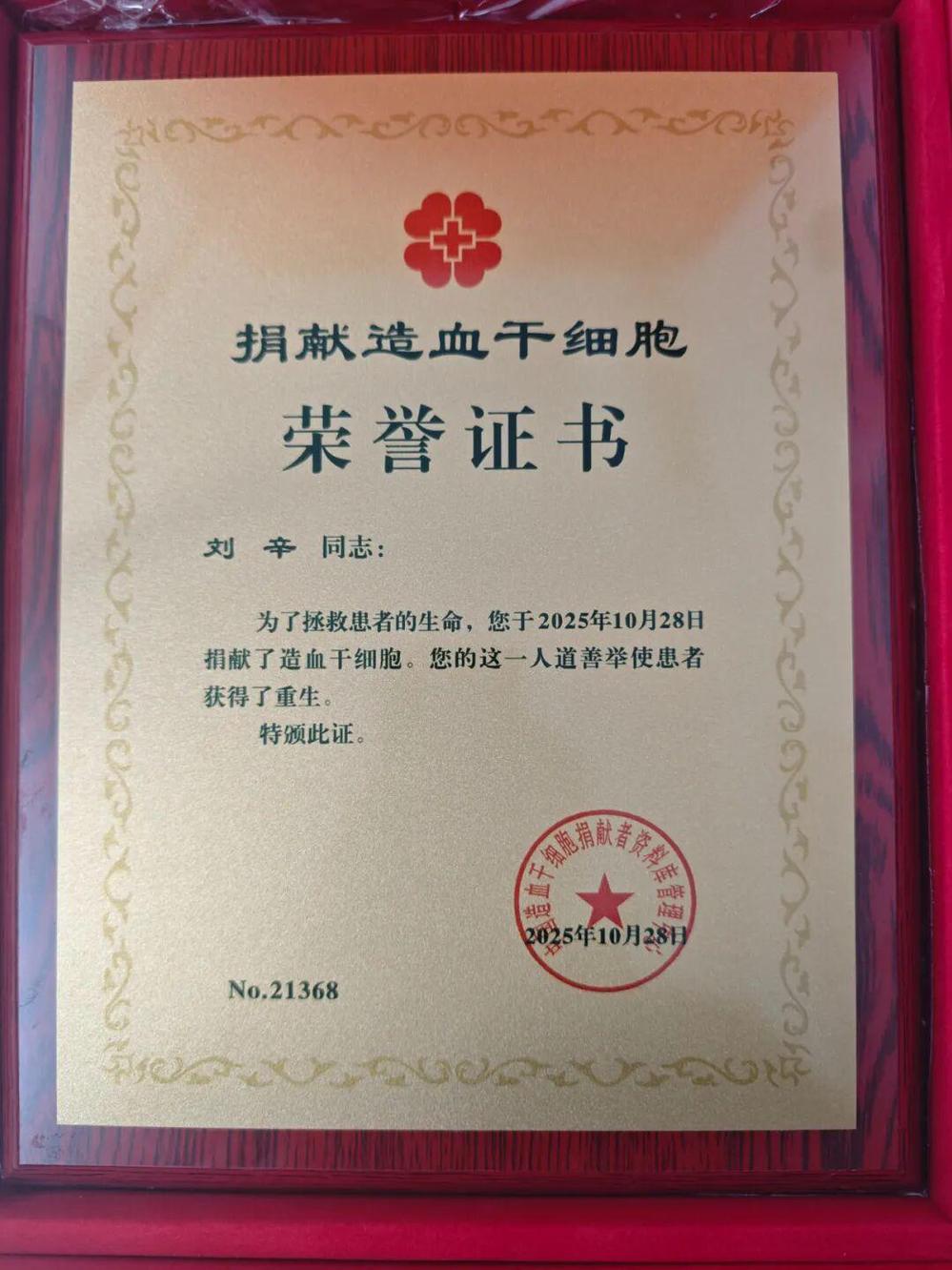 10月28日,合肥市红十字会向安徽警官职业学院发来一封感谢信。20岁的大学生刘辛顺利完成造血干细胞捐献,成为合肥市第144例、安徽省第817例、全国第21368位捐献者,也是合肥近几年最年轻造血干细胞捐献者。