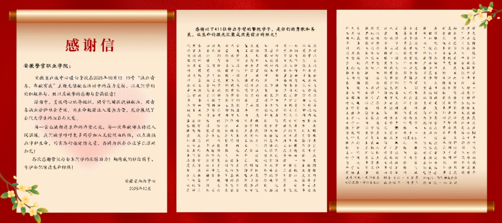 这是一堂生动的生命教育课,诠释了新时代学子的使命担当。在“明德尚法、弘毅致远”的校训浸润下,安徽警官职业学院的师生们始终朝着明大德、立大志、成大才、担大任的目标共同前进。近年来,该学院多次组织全体师生开展“无偿献血和急救普及”主题的志愿服务,承办安徽省血液中心组织的第十八届“我为祖国献热血”系列宣传之“热血青年 C位出道”主题公益活动。近3年的年均献血量达到20万cc,该学院团委和青年志愿者协会连续三年被合肥团市委、市卫健委、市红十字会授予“热血公益奖”“优秀组织奖”,连续两年荣获“驻肥学校无偿献血贡献三等奖”,2名学生荣获省级无偿献血先进个人称号,1名学生受邀参加长三角无偿献血交流会。