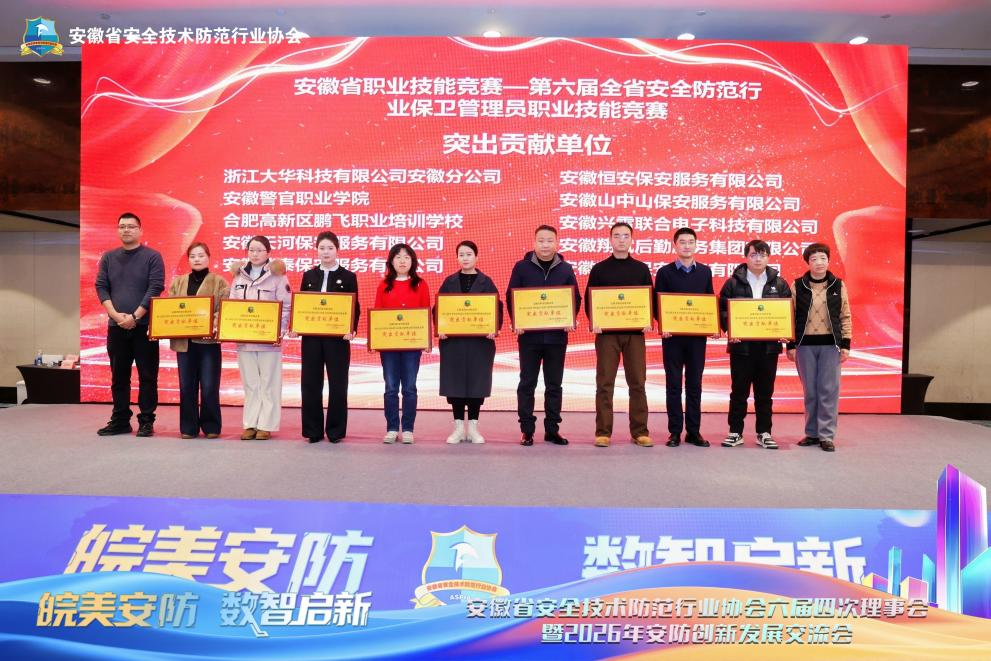 1月20日,在安徽省安全技术防范行业协会第六届第四次理事会暨常务理事会上,学院获安徽省职业技能竞赛——第六届全省安防行业技能竞赛“突出贡献单位”称号,学院教师尹向兵、黄琳琳获评2025年度“优秀裁判员”称号。此次荣誉的获得,充分肯定了学院在安全防范领域所做的努力和贡献。