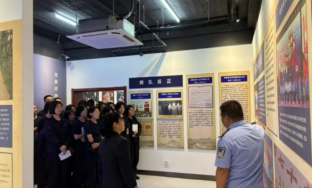 安徽省法治宣传教育基地是安徽省法宣办、安徽省司法厅依托原合肥监狱办公楼旧址打造的全国第一家省级法治宣传教育基地,是具有安徽特色的省级普法宣传教育阵地。在讲解员的引导下,师生们在安徽监狱历史文化展廊中,通过动态图文展板与实物陈列,系统了解安徽省法治建设的历史脉络与发展成就。斑驳的文物、珍贵的档案和生动的复原场景,让同学们真切感受到了法治不再是书本上冰冷的概念,而是一代代人努力推动的社会实践。沉浸式教学让抽象的法治理论转化为了可触可感的现实体验,不仅拓宽了师生们的视野,更在大家心中筑起了法治信仰之基,取得了良好的教育效果。