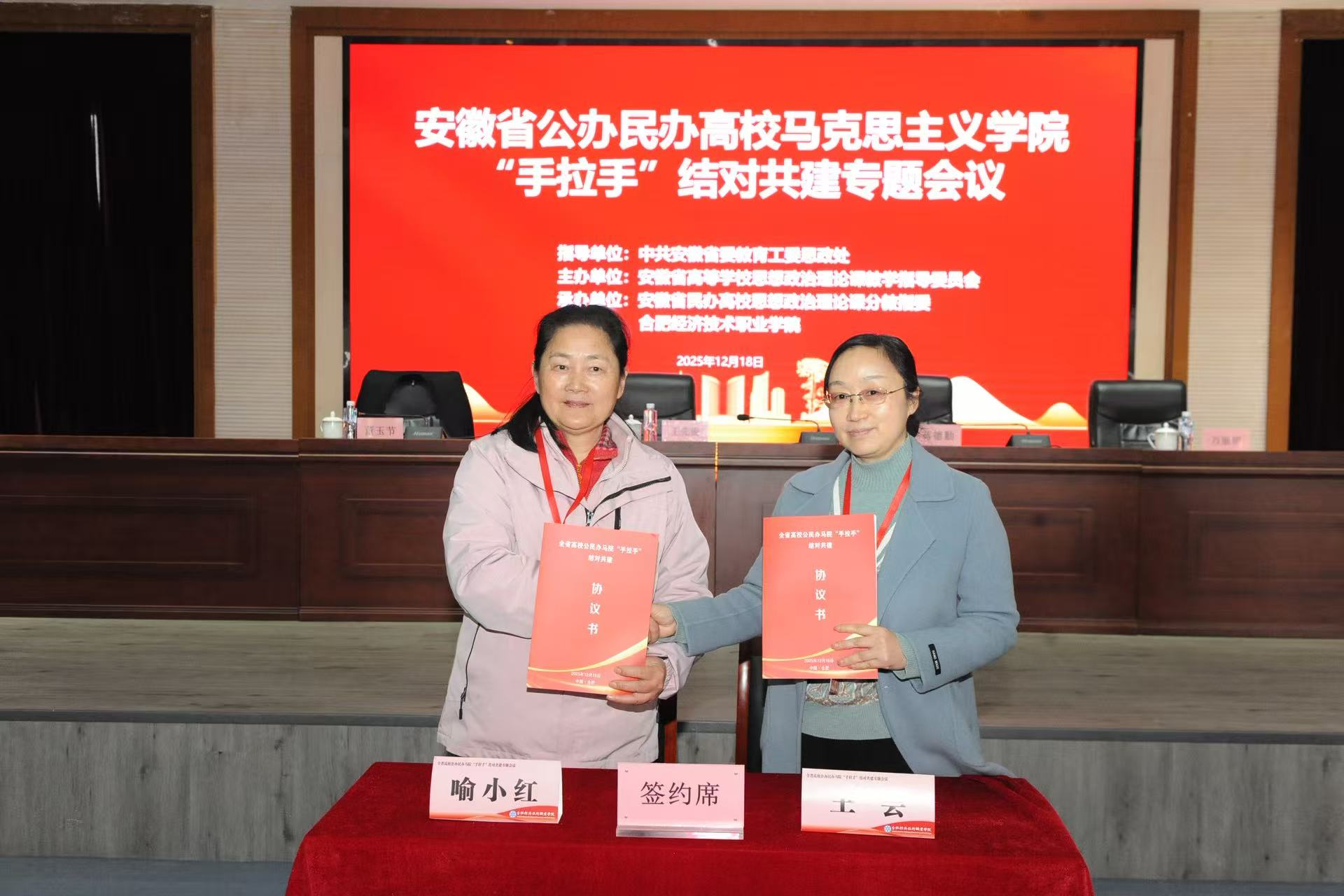 12月18日,安徽省公办民办高校马克思主义学院“手拉手”结对共建专题会议在合肥经济技术职业学院召开。会议由安徽省委教育工委思政处指导,安徽省高校思想政治理论课教学指导委员会主办。来自全省24所重点马克思主义学院、32所民办高校马院(思政部)负责人及民办高校思政课分教指委委员参加了本次会议。我院马克思主义学院副院长王芸应邀到会。