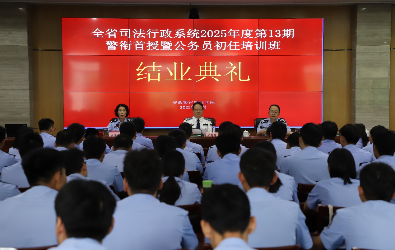 结业典礼对参训学员提出了殷切希望和要求。要坚定拥护“两个确立”、坚决做到“两个维护”。坚定政治立场、把好政治方向,对党忠诚、服务人民。提高综合素质,在实践中锻炼自己,知难而进。提高廉洁自律意识,以廉修身,牢记初心使命,恪守公正廉洁司法。以食不甘味的责任感对待工作,以眼中有活的勤勉心投身事业,以针尖挑土的韧性攻坚克难。将培训所学转化为推动司法行政事业高质量发展的磅礴力量,为安徽司法行政高质量发展做出应有的贡献。
